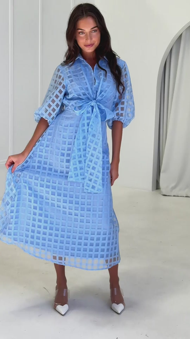– Colour: light blue checkered organza (print placement may vary with each piece)
