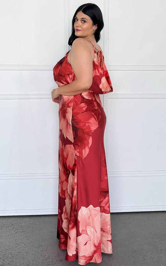 Evoke Mesh Maxi Dress - Black Blue Multi Floral